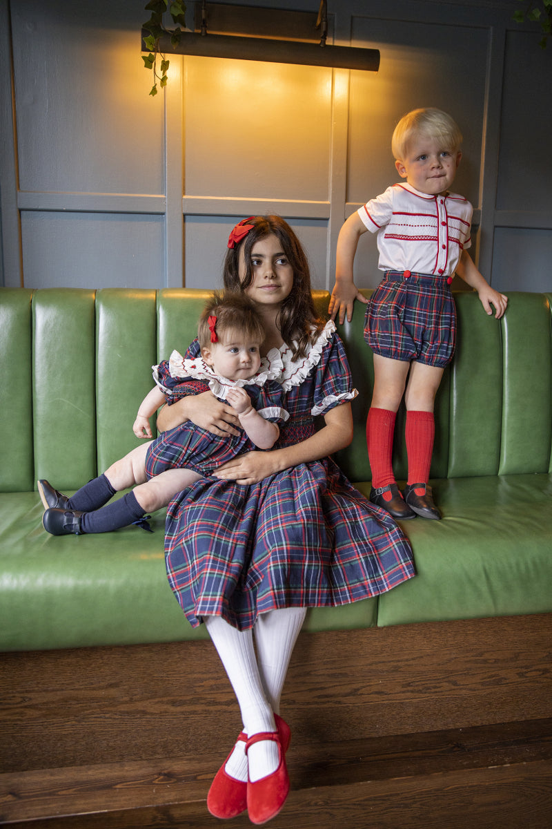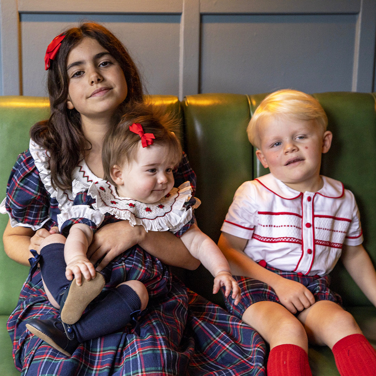 Get a nostalgic matching look with siblings and cousins wearing the Anna Handsmocked Girl Dress and Anna Handsmocked Baby Girl Romper.