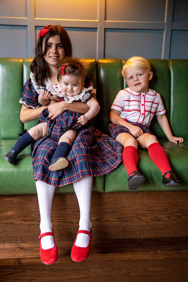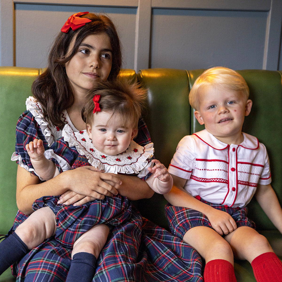 Matching Anna Baby Girl Romper and Alfred Baby Boy Set for siblings and cousins to make the perfect family Christmas picture.