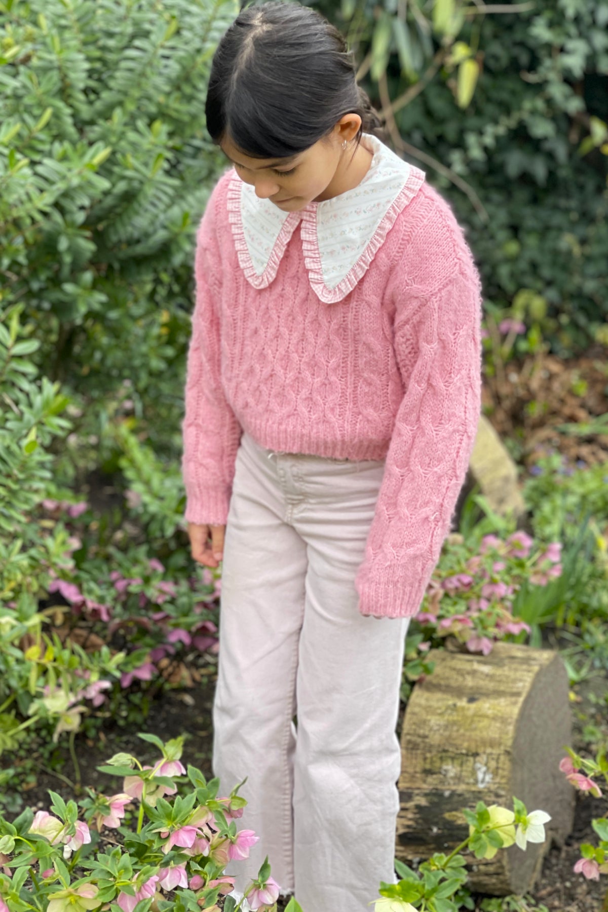 Finished with a charming statement collar with contrasting frills in gingham pink.