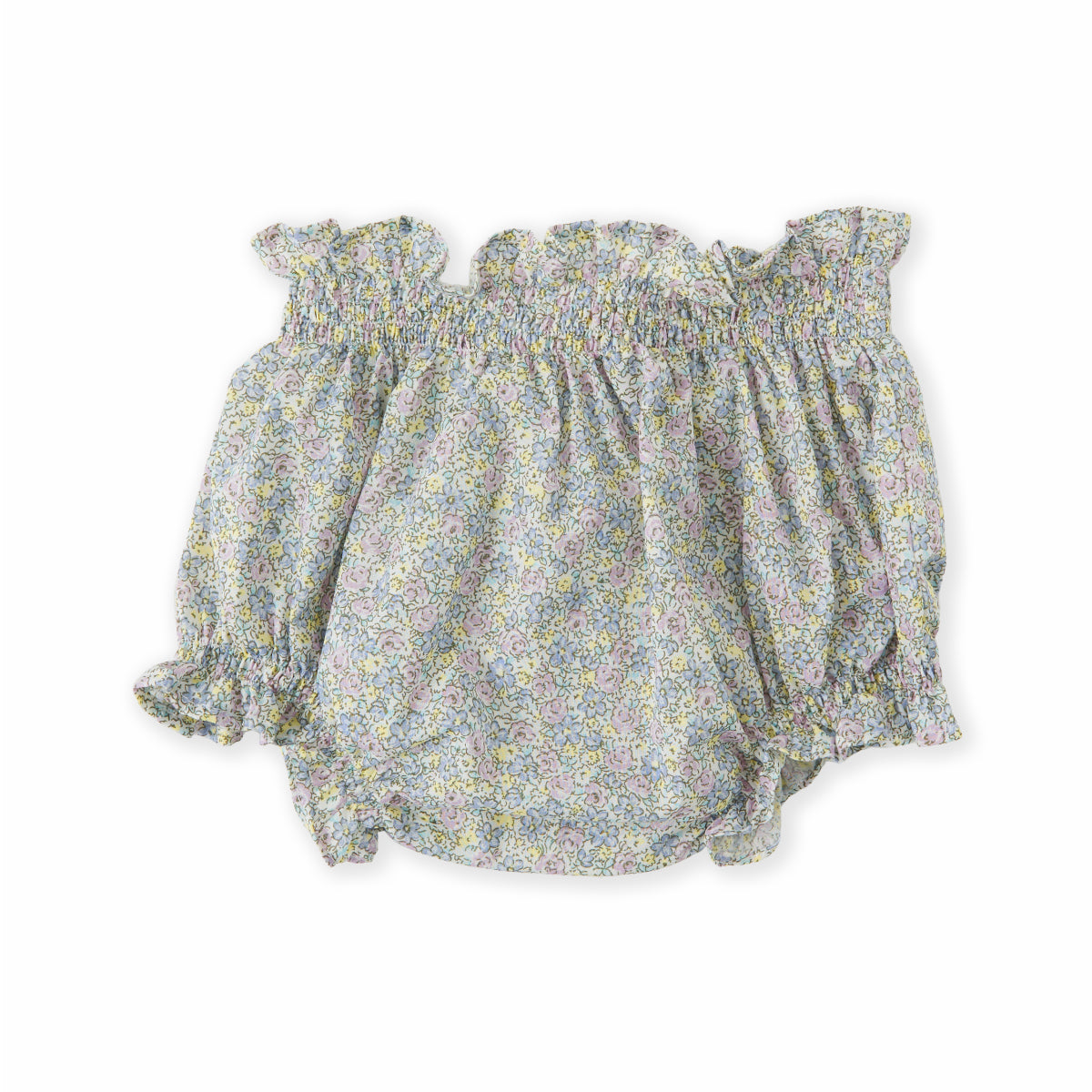 A sweet floral print to bring all the flowers this spring. Made from eco friendly 100% organic cotton with blooms in shades of blue, lilac and yellow.