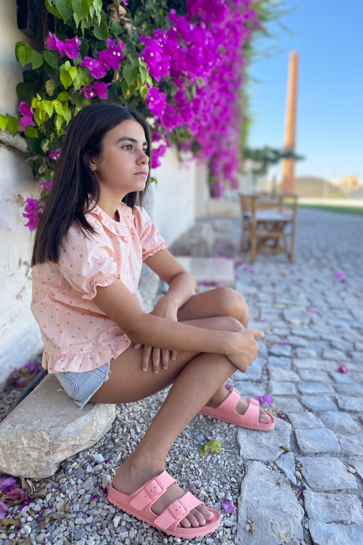 A charming girls' shirt crafted from a soft organic cotton for the summer season.