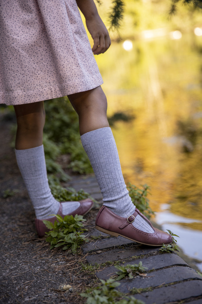 Finish the look with grey or cream ribbed tights, hair bow clip and Mary Jane shoes.