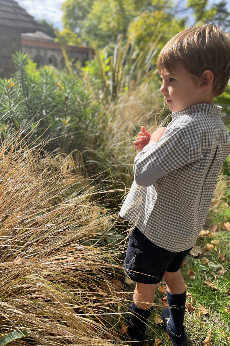 Smart long sleeved check shirt in tones of grey and blue with matching buttons, crafted in a soft and warm organic cotton fabric.