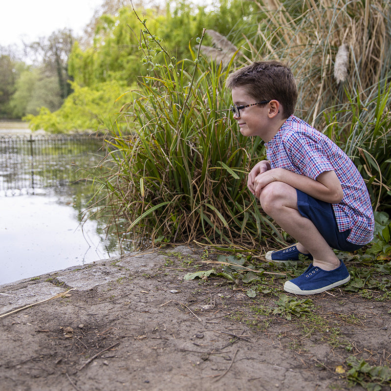 A nautical inspired checkered shirt in shades of red and blue for the summer adventures of your little boy.
