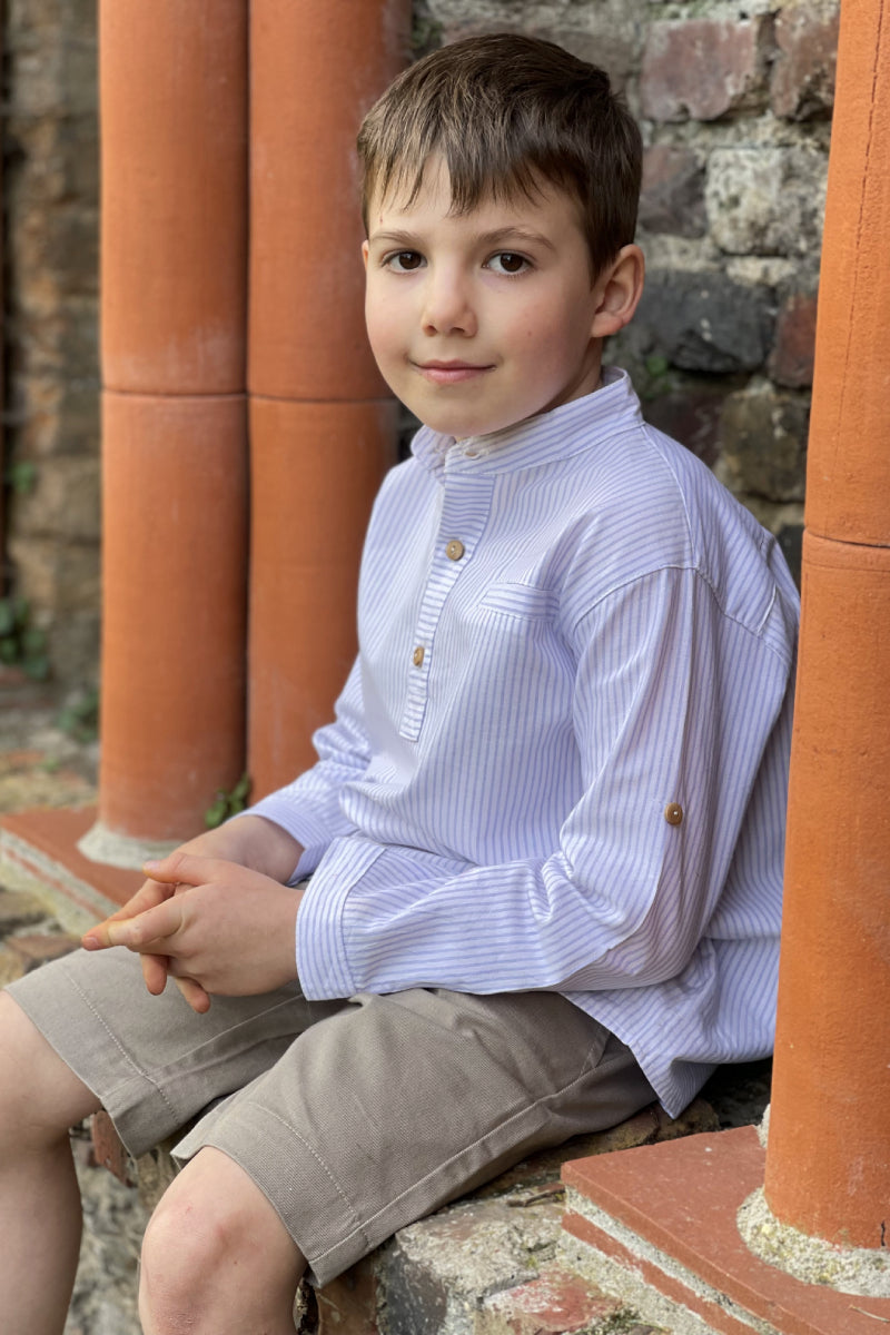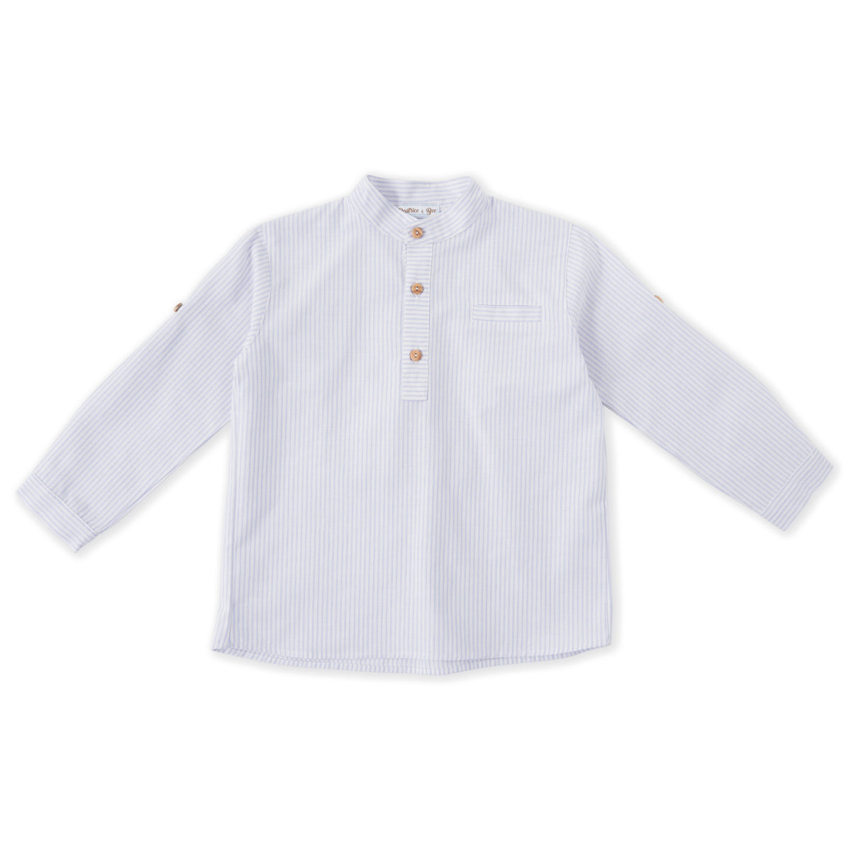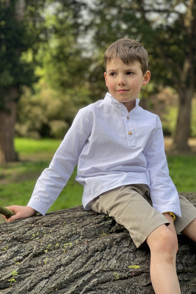 A classic and truly versatile long sleeved shirt for the spring-summer wardrobe of your little boy. Crafted from an eco friendly 100% organic cotton, it's decorated with a classic blue and white stripe.