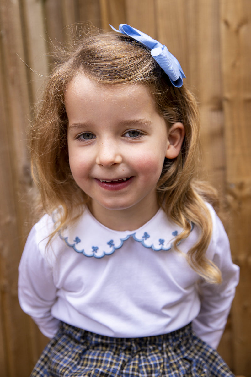 Pair with the Clara Frill Collar Blouse or Gloria Embroidered Collar Top and add the final touch with any of our hair bows in French Blue or Mustard.
