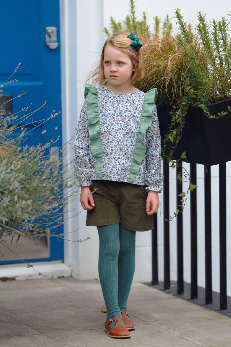 Style with our Kensington floral blouse and ribbed tights in bottle green.